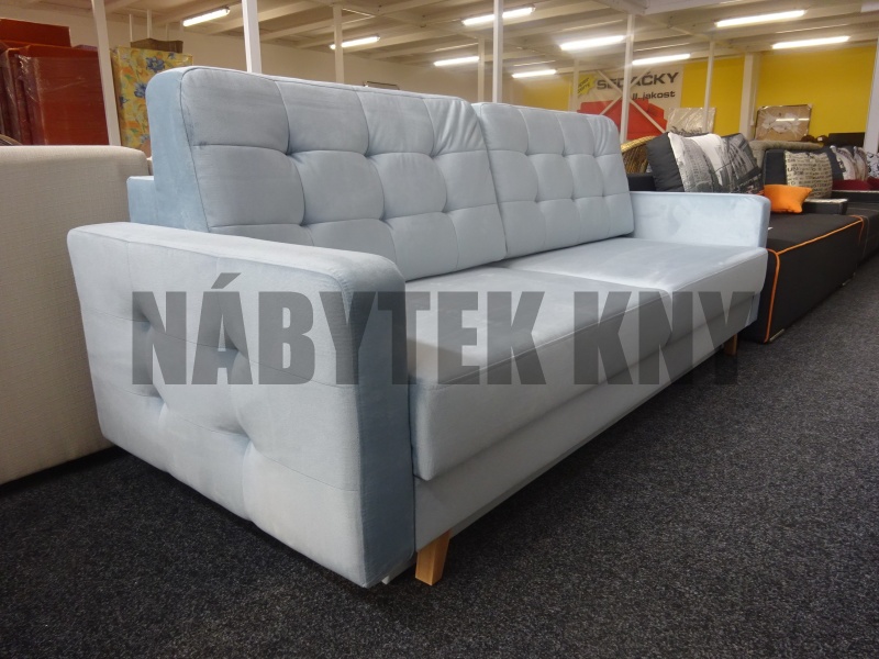 rozládací pohovka s úložným pohovka s úložným prostorem, model retro, nohy masiv, rozměry sedačky: 229x97x95cm, spací plocha: 200x140cm, 5 barev: yelow, orange, grey, green a blue, jen na objednání