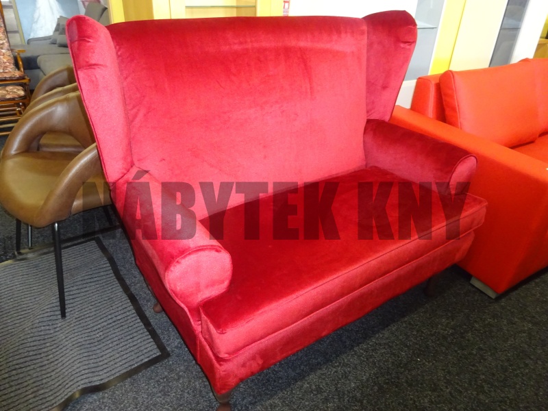 červená sofa na nožkách, výška sedu 52cm, rozměry: 133x77x109cm, zboží je ve II. jakosti, dovoz Německo, prodáno