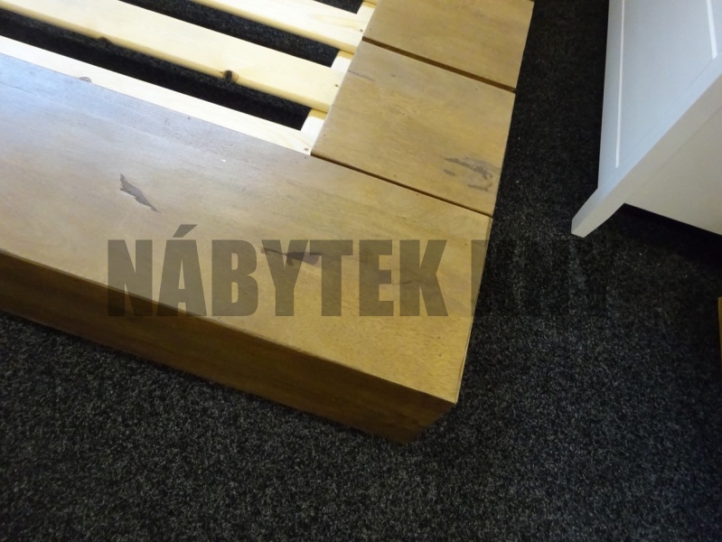 dřevo mango, rozměry postele 232x242cm, výška 70cm, boční rám šíře 25cm, v ceně není rošt a matrace 200x180cm, cena roštu 590Kč 1kus, dovoz Německo