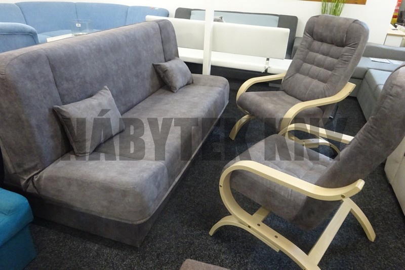 rozkládací sedačka s uložným prostorem a 2pohodlná křesla, látka BERLIN, područky olše, rozměry sedačky: 190x80x40cm, spací plocha: 190x113cm, SKLADEM