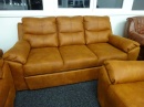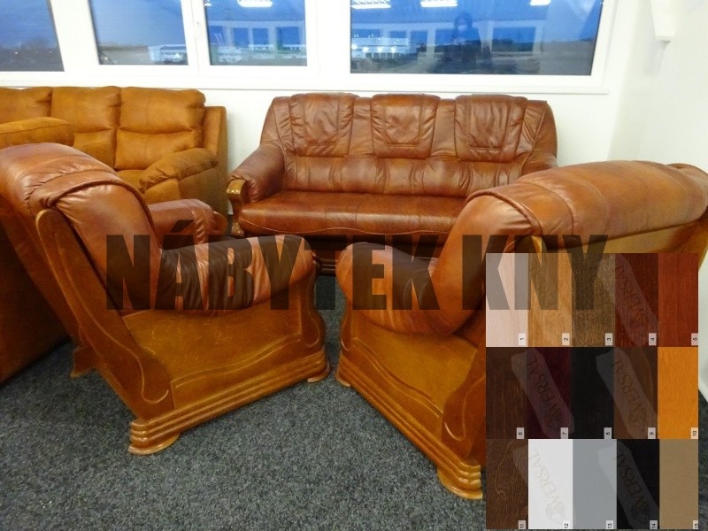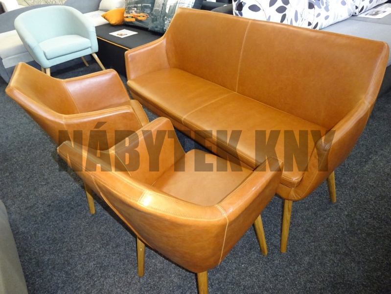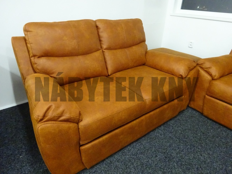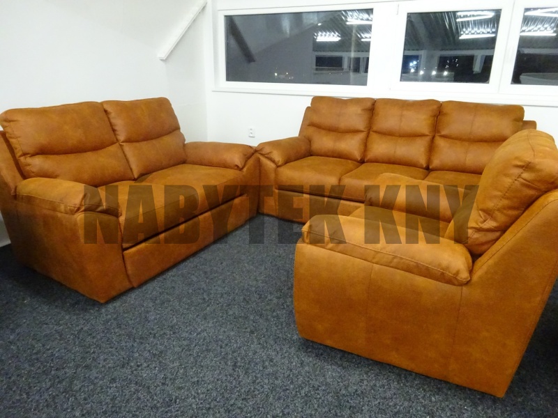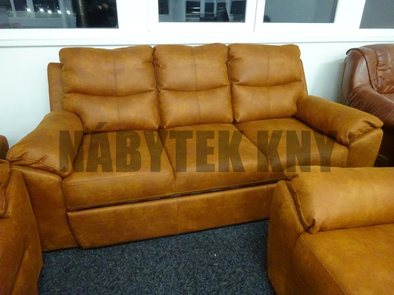 hnědá eko kůže, v ceně je pohovka a 2 pohodlná křesílka, rozměry křesla: 58x58x84cm, rozměry sedačky: 159x56x86cm, zboží je ve II. jakosti, dovoz Německo, prodáno