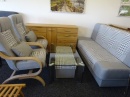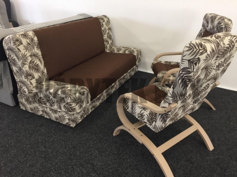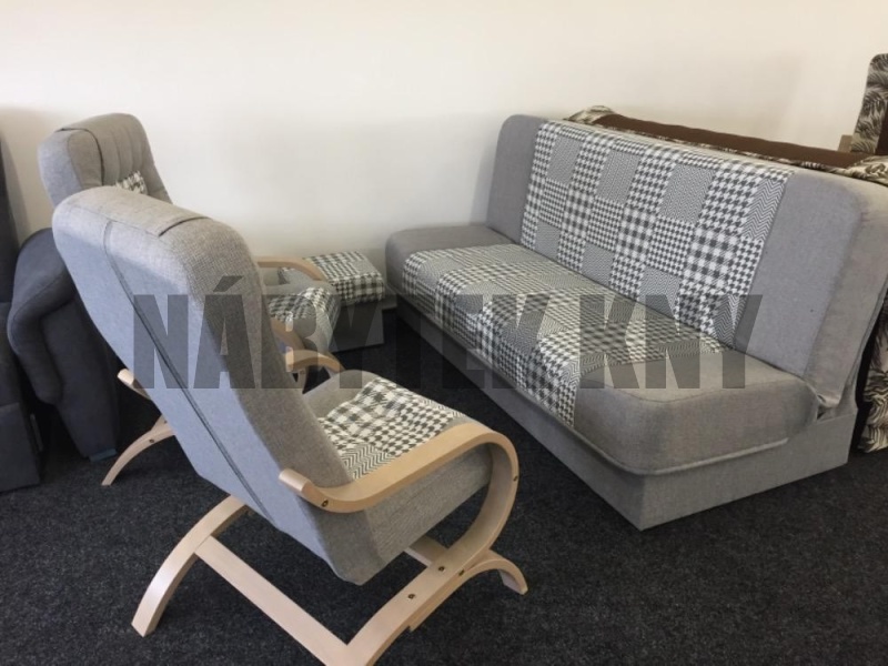 rozkládací sedačka s uložným prostorem, 2pohodlná relaxační pohupovací křesla, výška sedu 42cm, rozměry sedačky: 185x85x90cm, rozměry lůžka: 185x108cm, křeslo: 65x100x85cm, prodáno
