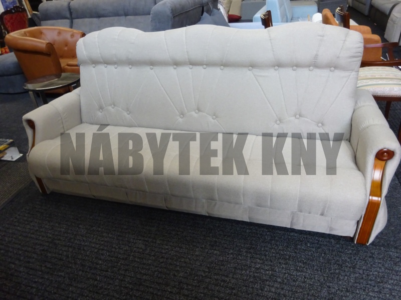 světlá, rozkládací sofa s uložným prostorem, v ceně jsou 2 empírová křesla, rozměry lůžka: 193x125cm, rozměry pohovky: 220x85x90cm, prodáno