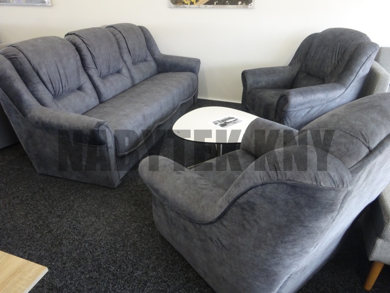 trojsedák sedačka má úložný prostor a je rozkládací, rozměry rozloženého lůžka: 186x125cm, rozměry pohovky: 220x100x92cm, křeslo: 85x90x98cm, vyprodaná