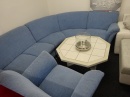 velké učko sedačka kovové nohy, materiál modrá žinilka, původní cena 25.900Kč, rozměry učka sedačky: 220x200cm, II. jakosti, dovoz Německo
