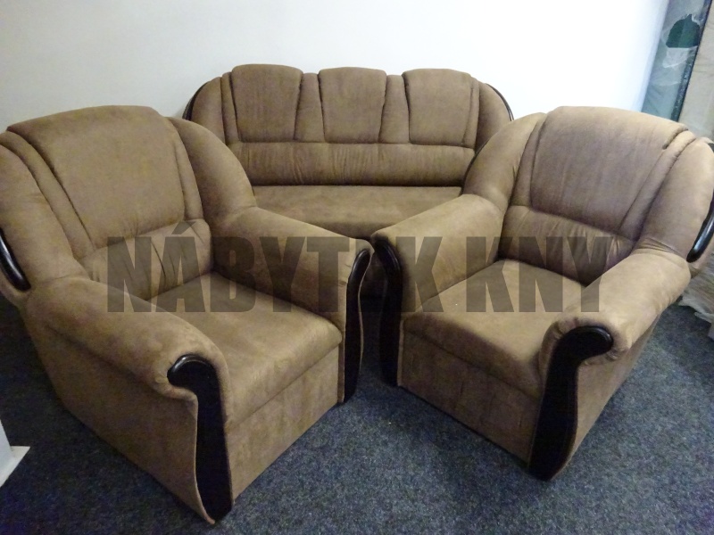 rozkládací sedačka s úložným prostorem a 2poohodlná křesla, rozměry sedačky: 185x90cm, rozměry lůžka: 185x115cm, látka hnědá, doprodej