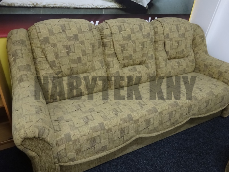 3+2+křeslo, celočalouněná sedačka vhodná do prostoru, ozdoba masiv, trojsedák rozkládací 220x90x95cm, dvojsedák 150x90x95cm, křeslo 87x90x95cm, plocha na spaní 185x120cm, prodáno