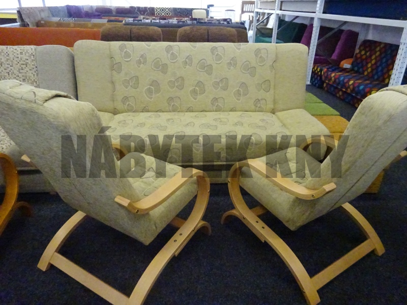 sedačka + 2křesla, trojsedák je rozkládací s úložným prostorem, rozměry: 190x120cm, pohodlná relaxační křesla, praktická rozkládácí pohovka, velká škála barev na objednání, vzorník látek na prodejně, područky 4 odstíny dřeva, látka hnědá, područky BUK