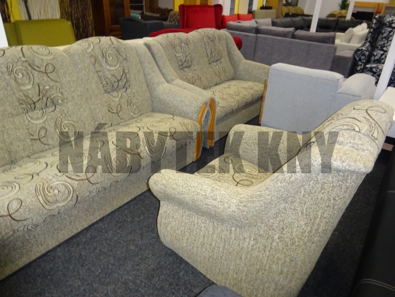 3+2+křeslo, celočalouněná sedačka vhodná do prostoru, ozdoba masiv, rozkládací s úložným prostorem, trojsedák R 220x90x95cm, dvojsedák 150x90x95cm, křeslo 87x90x95cm, rozměry spaní: 185x120cm, rozměry sedačky: 180x150cm, prodáno
