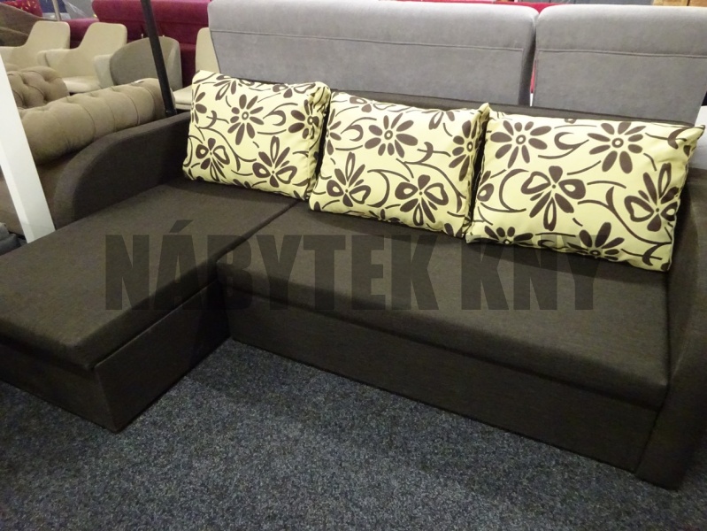 rozkládací roh s uložným prostorem, spací plocha: 200x130cm, v ceně jsou polštáře, prodáno