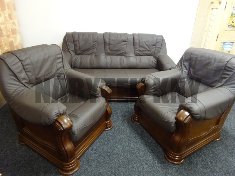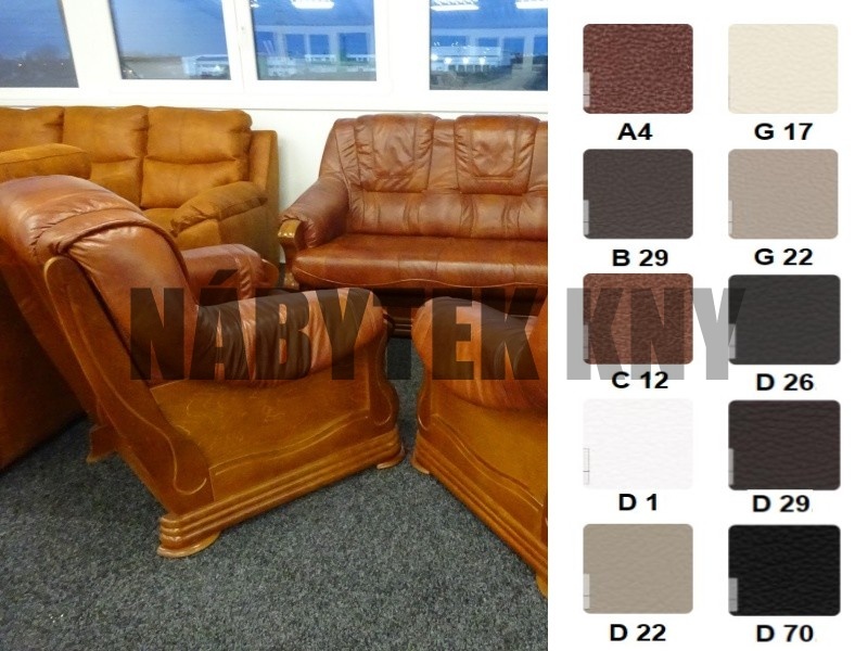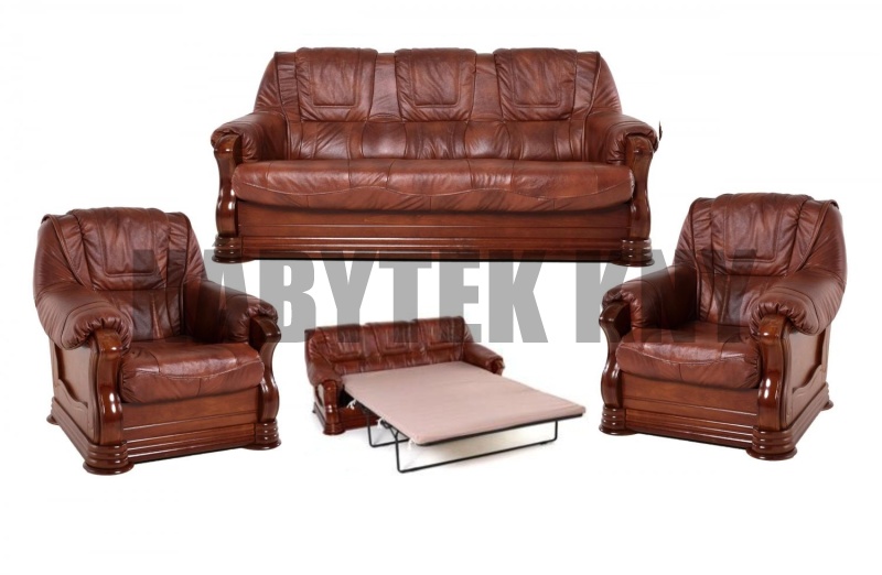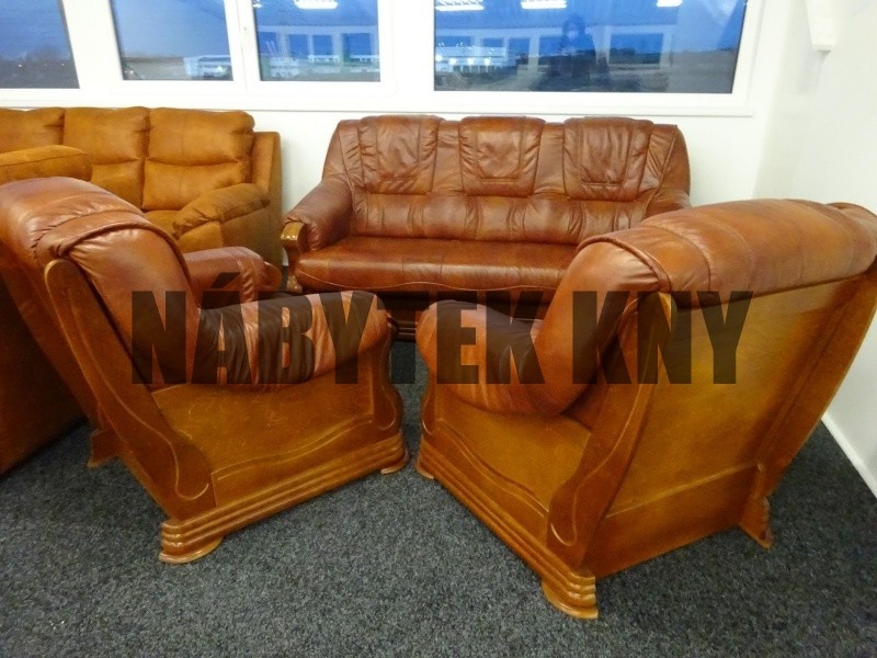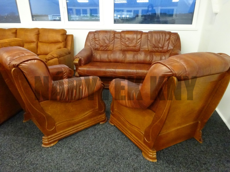 kožená sedačka je rozkládací, ceně jsou 2 křesla, sedačka má masivní dřevěné zdobení, sedačka rozměry: 195x99x95cm, spací plocha: 192x140cm, barva rezavá na objednání