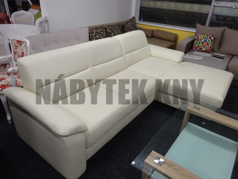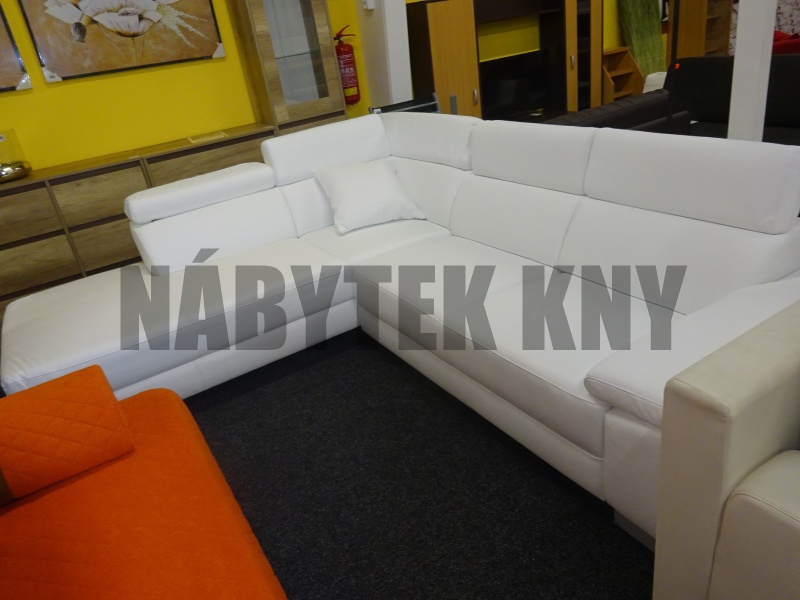 bílá kůže, rozkládací sofa s úložným prostorem, štelovací podhlavníky, s polštářem, rozměry lůžka: 190x80cm, rozměry sedačky 260x230cm, zboží je ve II. jakosti, dovoz německo, původní cena 2.749,99 Euro, prodáno