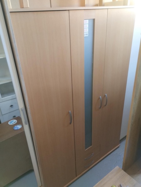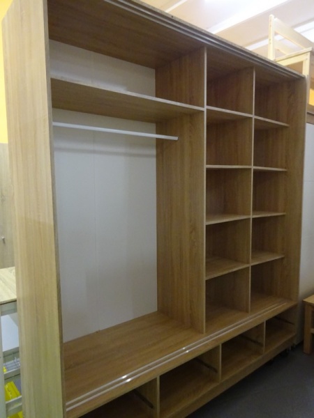 zleva šatní tyč, uporostřed 2DV police a napravo zase police, zboží je ve II. jakosti, dovoz Německo