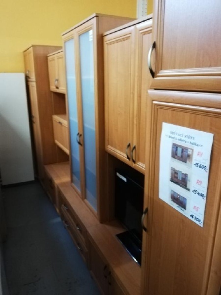 stěna obashuje 4kusy nábytku, dveře buk, délka 415cm, jen kompet za 39.000Kč