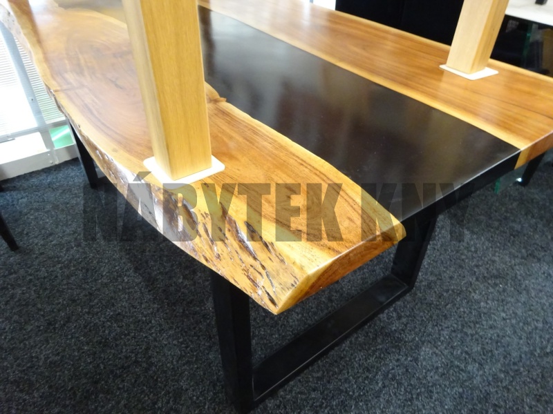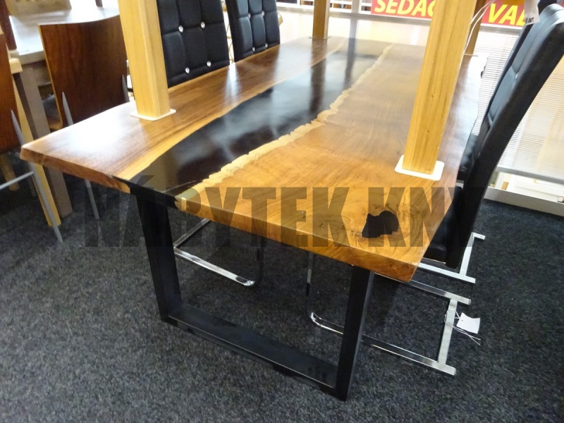 tl. desky 35mm, noha 8x4cm, kov, každý stul orignál, dřevo akát, dovoz Německo, prodáno