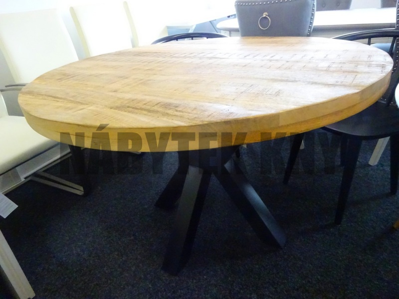 dřevo akát, černé masivní kování, dovoz Německo stul cena 6.700Kč