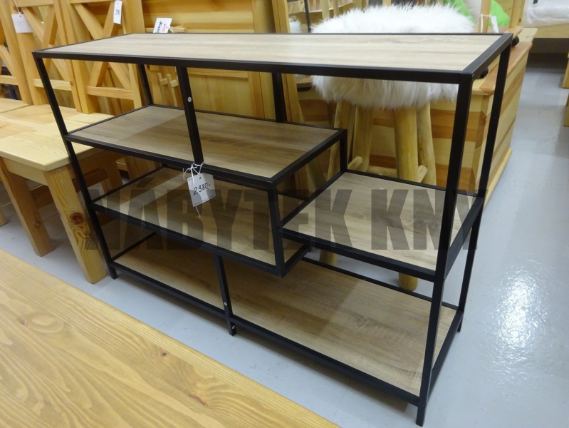 černé dřevo dekor jasan, černá kovová konstrukce z oceli, pevná nosnost do 26kg, II. jakost, PC 4.990Kč nyní za 2.690Kč